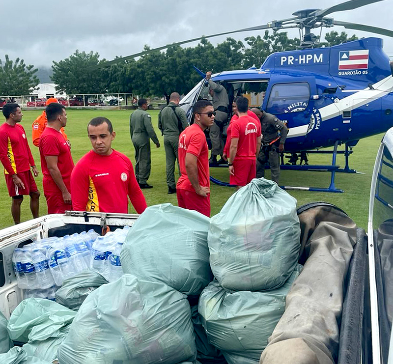 A Defesa Civil do Estado está atuando em Mutuípe, Medeiros Neto, Ilhéus, Muquém do São Francisco, Wanderley e Cotegipe, onde já entregou 33 toneladas de alimentos, 5.500 litros de água, 650 colchões, 650 lençóis, mil kits de higiene pessoal e 200 kits de limpeza.