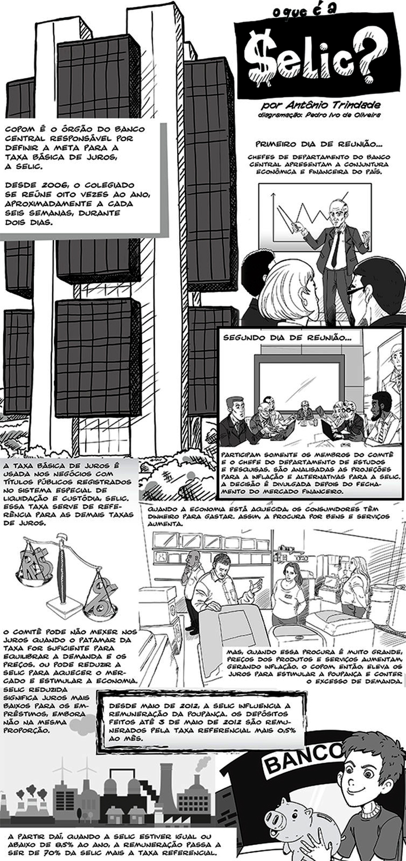 A taxa básica de juros é usada nas negociações de títulos públicos no Sistema Especial de Liquidação e Custódia (Selic) e serve de referência para as demais taxas de juros da economia. Ao reajustá-la para cima, o Banco Central segura o excesso de demanda que pressiona os preços, porque juros mais altos encarecem o crédito e estimulam a poupança.