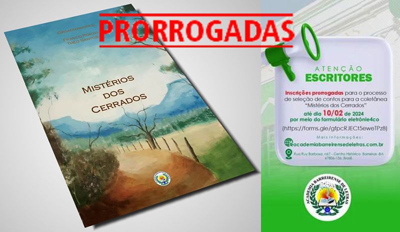 As inscrições de obras para a coletânea de contos ‘Mistérios dos Cerrados’ foram prorrogadas até o dia 10 de fevereiro e continuam a ser realizadas através de meio eletrônico.