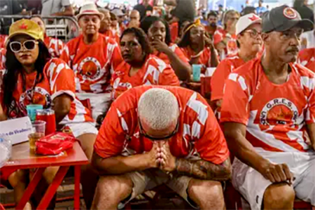 Nervosismo na apuração das notas das escolas do Grupo Especial do carnaval do Rio, na Cidade do Samba. Foto: Tânia Rego/Agência Brasil |