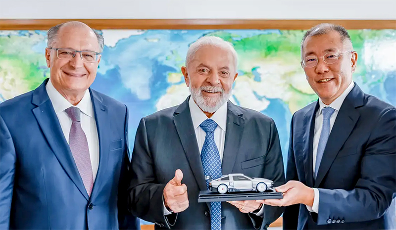 “O país estável e com futuro recebe mais investimentos. Recebi o presidente executivo da Hyundai Motor, Eui-Sun Chung, que anunciou que o grupo planeja investir mais de 1,1 bilhão de dólares até 2032 em tecnologia e em hidrogênio verde. Mais uma grande empresa crescendo em nosso país”, escreveu Lula, em publicação nas redes sociais.