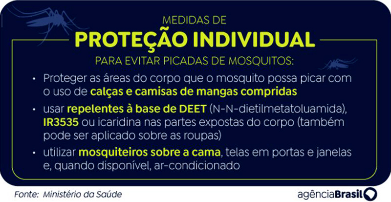 Medidas de proteção individual para evitar picadas de mosquitos. Foto: Arte/EBC
