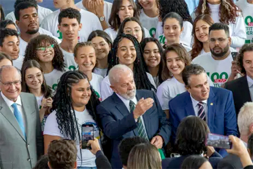 Presidente Lula, acompanhado do ministro da Educação, Camilo Santana, e do vice-presidente Geraldo Alckmin, durante solenidade de anúncio de 100 novos campi de institutos federais - Fabio Rodrigues-Pozzebom/Agência Brasil |
