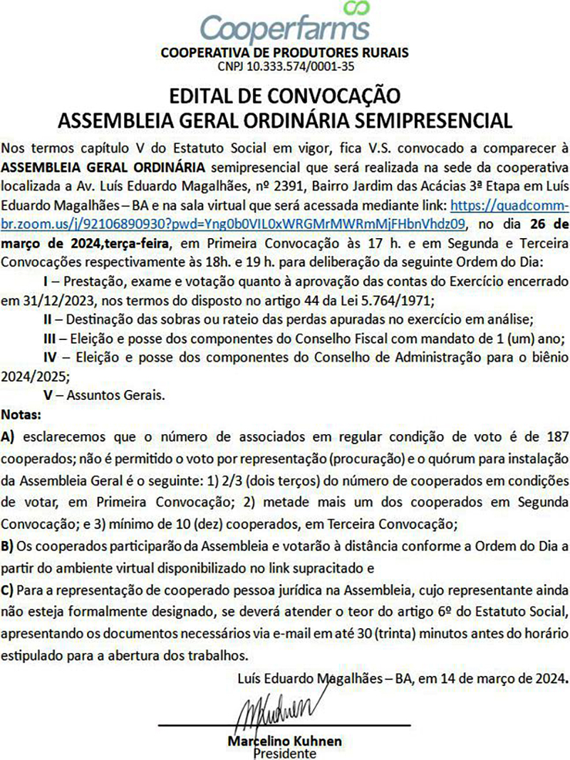 COOPERFARMS_EDITAL DE CONVOCAÇÃO - ASSEMBLEIA GERAL ORDINÁRIA SEMIPRESENCIAL