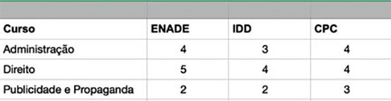 Já o o Conceito Preliminar de Curso (CPC) combina diferentes aspectos, como desempenho dos estudantes; valor agregado pelo curso; corpo docente; e condições oferecidas para o desenvolvimento do processo formativo.