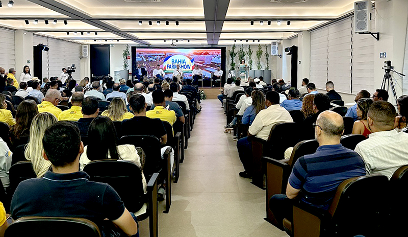 Em clima de otimismo no campo, consolidação da infraestrutura e reconhecimento da feira como uma das maiores do País, a Bahia Farm Show 2024 foi lançada na noite desta quinta-feira (4) para a imprensa regional e nacional em um formato de coletiva de imprensa, transmitida ao vivo pelas redes sociais, e que também contou com a presença de representantes do poder público, produtores rurais, expositores, instituições financeiras e membros da sociedade civil. O presidente da Bahia Farm Show e da Associação de Agricultores e Irrigantes da Bahia (Aiba), Odacil Ranzi, o vice-presidente, Moisés Schmidt, e o coordenador, Luiz Pradella, apresentaram as principais novidades da 18ª edição da feira agrícola, que será realizada entre os dias 11 e 15 de junho, e terá como tema “Agro: a Herança do Brasil”.