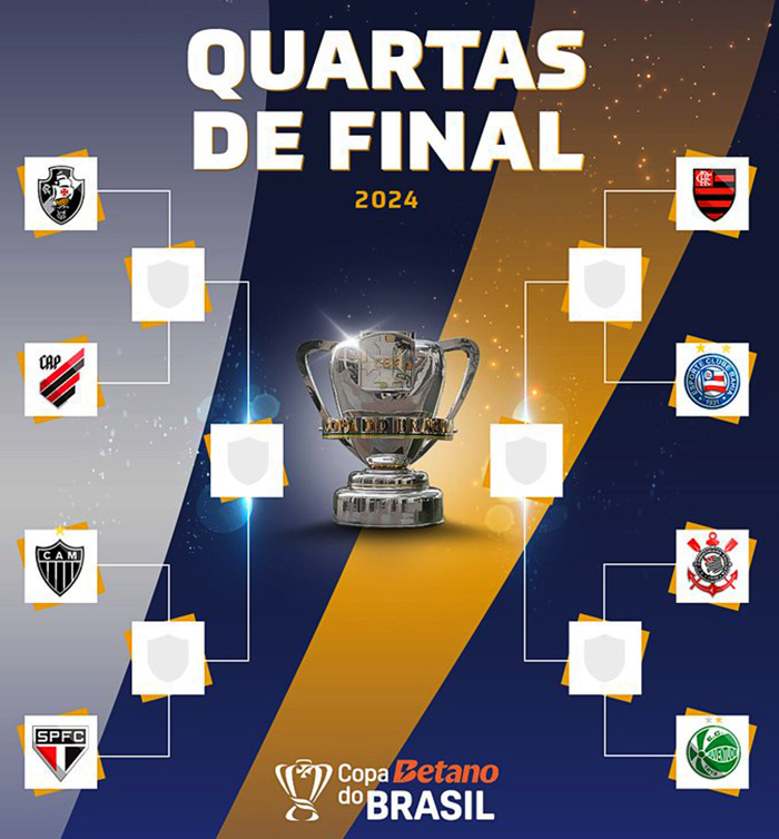Além disso, as quartas de final da competição nacional contarão com o embate entre Flamengo e Bahia, o encontro entre Vasco e Athletico-PR e o choque envolvendo Corinthians e Juventude. As datas bases dos confrontos desta etapa da competição serão os dias 28 de agosto e 12 de setembro.
