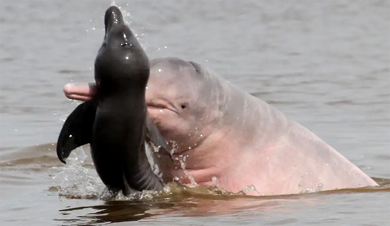 Em um dos exemplos do relatório, é apontado decréscimo de 60% dos botos cor-de-rosa ou golfinhos de rios da Amazônia devido à poluição e a outras ameaças, como a mineração.