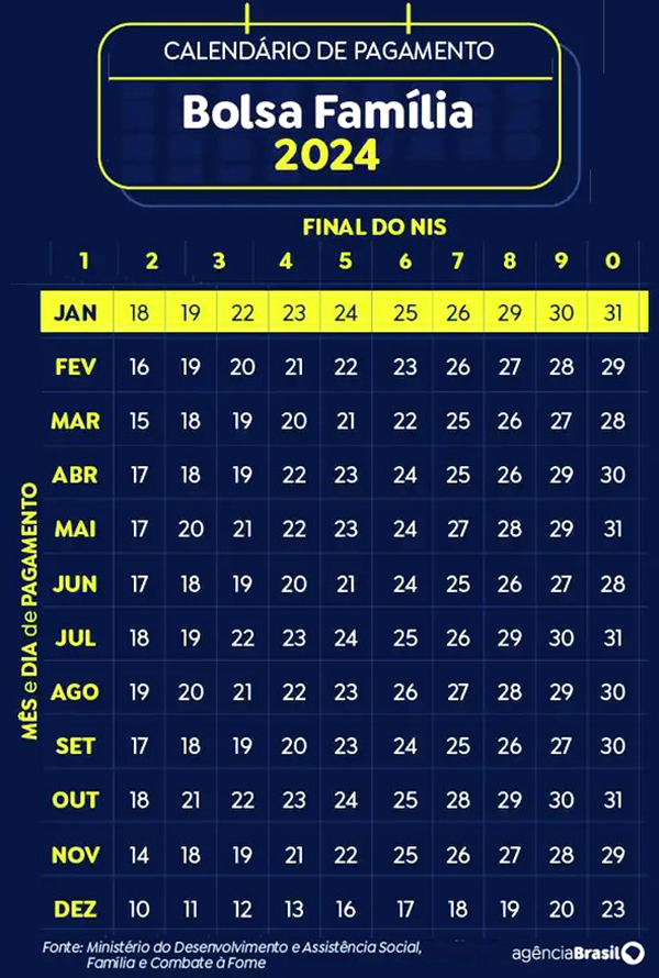 As informações são falsas, afirma o ministério. O pagamento oficial mensal do benefício segue o calendário divulgado no início deste ano e disponível no