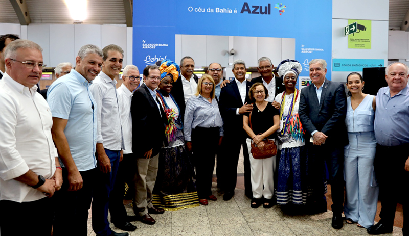 A Azul Linhas Aéreas opera 160 voos domésticos, no Brasil, e voos internacionais para os Estados Unidos, Portugal, Uruguai e Argentina. O secretário de Turismo Maurício Bacelar enfatiza que a ampliação da malha aérea consolida a Bahia como um destino turístico mais acessível e integrado.