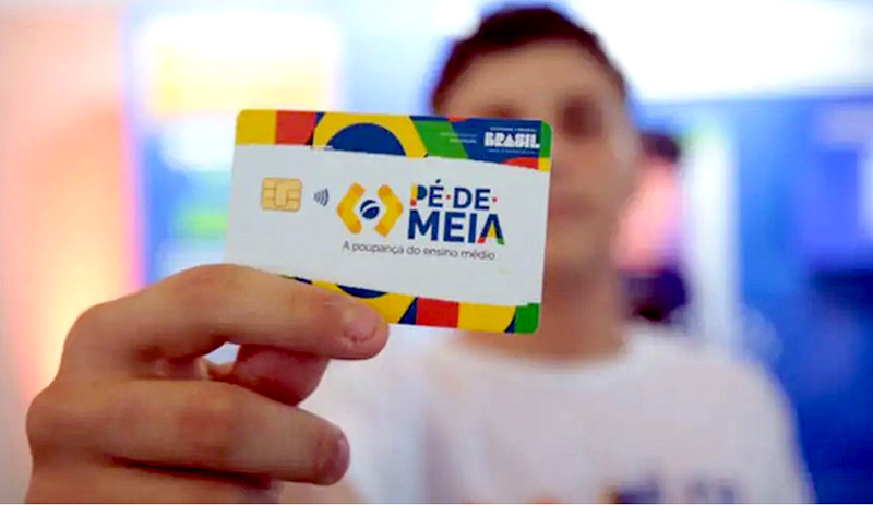 Pessoa segura o cartão do programa Pé de Meia © MEC/Divulgação