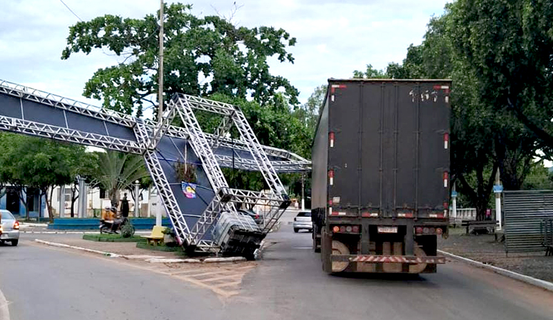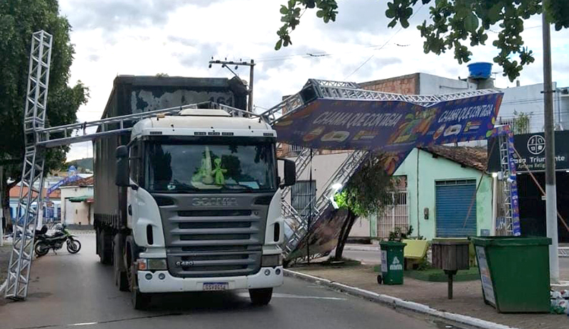Às seis horas da manhã de ontem, domingo (15), a imprudência de um motorista de carreta danificou o pórtico na entrada oeste do Circuito Zé de Hermes do Barreiras Folia, no Centro Histórico.