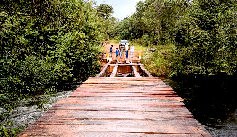 Os trabalhos incluem a recuperação do pé-direito, substituição das tábuas de rolamento, troca dos pranchões de madeira e o alinhamento completo da estrutura. A medida foi adotada após vistoria que apontou a necessidade de reparos para assegurar a trafegabilidade e prevenir riscos aos usuários. Para a execução dos serviços, a ponte está temporariamente interditada. A previsão é de que a obra seja concluída até a próxima semana, podendo ser finalizada antes do prazo estimado, conforme o andamento dos trabalhos.