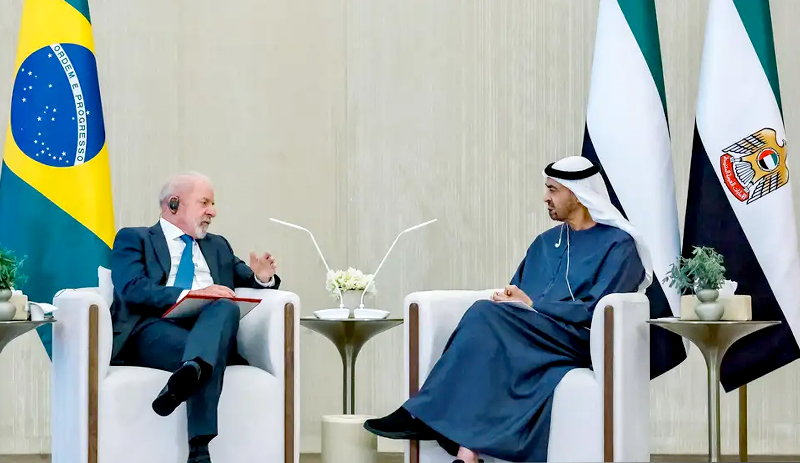 Lula passou por Abu Dhabi, capital emirática, após sua viagem oficial à Índia e à Coreia do Sul. As informações sobre o encontro foram divulgadas pelo Palácio do Planalto e em publicação nas redes sociais