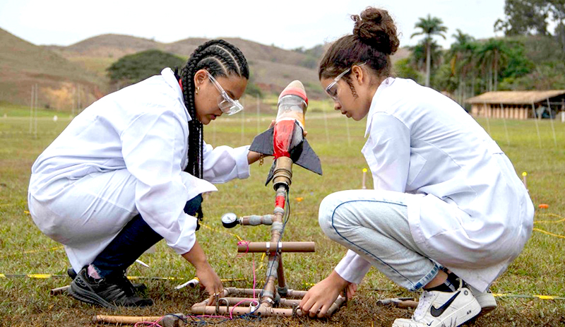 Alunas fazem teste na Olimpíada Brasileira de Foguetes © OBAFOG/Divulgação