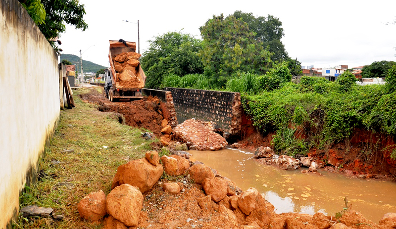 A Prefeitura de Barreiras por meio da Secretaria de Infraestrutura, Obras, Serviços Públicos e Transportes, está realizando uma intervenção no Canal da Vila Dulce para conter o avanço da erosão provocada pelas fortes chuvas que atingem a região nas últimas semanas.