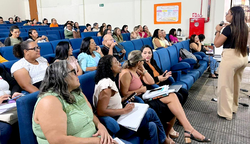 A formação abordou temas estratégicos para o fortalecimento do processo de ensino-apendizagem, entre eles a recomposição das aprendizagens, a análise de diagnósticos e definição de intervenções pedagógicas, a elaboração de sequências didáticas com intencionalidade e o movimento formativo como suporte direto à prática em sala de aula.