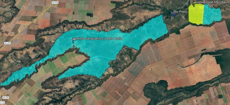 O que mais preocupa, porém, não é apenas a extensão da área suprimida. Os mapas e imagens encaminhados à reportagem indicam que o foco mais sensível do episódio está na região da Cachoeira do Rio Preto, mais precisamente no Marinheiro, divisa com a antiga localidade da Pedra de Fogo, onde por muitos anos, uma guarita do Condomínio Estrondo controlava uma área de Reserva Legal do complexo. O desmate encontrado aponta, não apenas, mais um flagrante de infração ambiental no oeste baiano, ele atinge o coração de uma disputa fundiária e territorial histórica no Vale do Rio Preto.