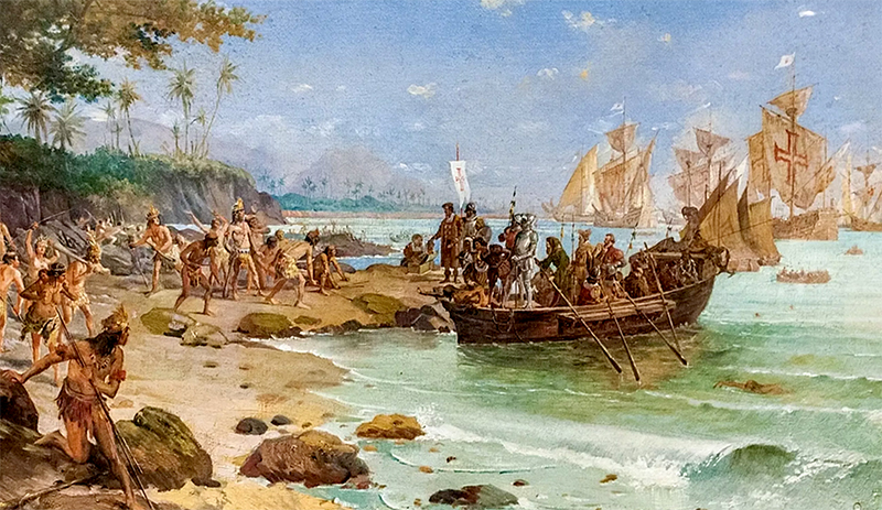 Desembarque dos portugueses no Brasil © Tela de Oscar Pereira da Silva (1922)