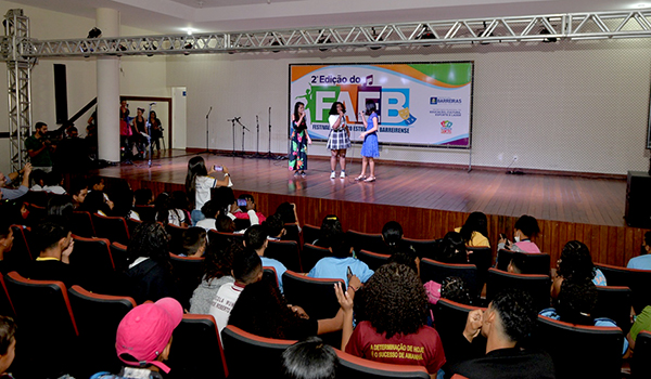 O palco do Centro Cultural Rivelino Carvalho foi invadido pela musicalidade, brilho e emoção nesta quinta-feira (11) no penúltimo dia de apresentações no Festival Artístico Estudantil Barreirense-FAEB. Realizado pela Prefeitura de Barreiras através da Secretaria de Educação, Cultura, Esporte e Lazer, essa 2ª edição do FAEB tem movimentado todos estudantes da rede municipal de ensino, que a cada dia dão um show de interpretação, criatividade e potência vocal.