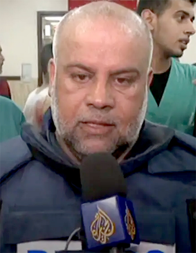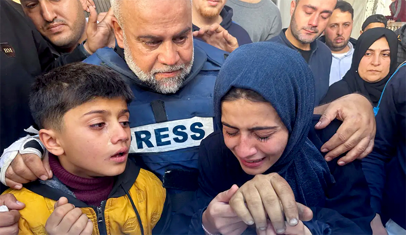 O jornalista palestino Wael Al-Dahdouh, de 53 anos, fazia uma transmissão ao vivo quando recebeu um telefonema informando que sua esposa, dois dos seus filhos, de 7 e 15 anos, e o neto, com poucos meses de vida, foram assassinados em um bombardeio israelense, no dia 25 de outubro de 2023.