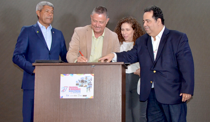 O ato de assinatura da transferência de dominialidade do imóvel rural ocorreu nesta quinta-feira (21), em Salvador (BA), durante a abertura do 27º Fórum Regional de Fortalecimento da Rede de Parcerias – Etapa Bahia.