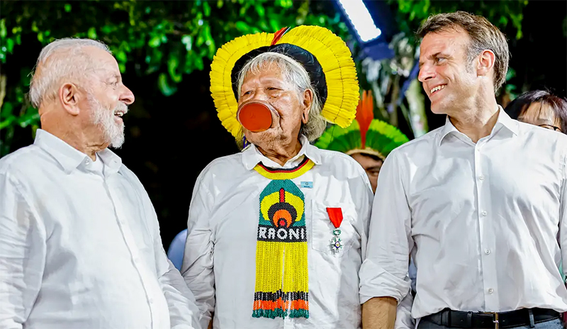 Cacique Raoni recebe honraria de Macron e pede demarcações a Lula