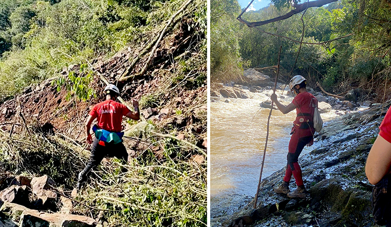 No dia de ontem, quarta-feira (8) a tropa do Corpo de Bombeiros Militar da Bahia (CBMBA) atuou no município de Bento Gonçalves. O objetivo é encontrar três pessoas que estão desaparecidas naquela região. No início da tarde, por volta das 14h, as condições climatológicas mudaram drasticamente e as buscas tiveram que ser suspensas. Durante as buscas em Bento Gonçalves a retroescavadeira que dava apoio na operação ficou atolada, tendo que ser recolocada em condições normais de atuação pelos bombeiros, operação que durou cerca de 1h.