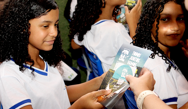 No começo da tarde, a Caravana Bahia Sem Fogo realizou uma ação socioeducativa na Escola Municipal Jonas Araújo, em um momento especial de bastante descontração e de maneira lúdica entre as crianças, adolescentes e integrantes da Caravana. O objetivo é que por meio das instruções recebidas os alunos possam auxiliar a proliferar a importância de se prevenir os incêndios florestais tanto nas suas famílias como na comunidade.