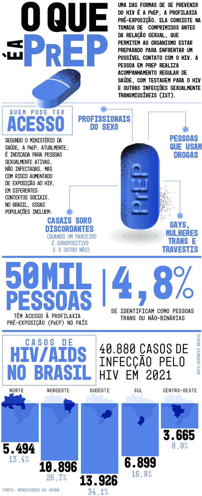 Dados do ministério indicam que, em março de 2024, cerca de 85 mil pessoas estavam em uso de PrEP no país, sendo 82% HSH; 3,2% mulheres trans/travestis; e 6,7% homens cisgêneros (termo usado para definir pessoas que se identificam com o gênero ao qual está associado o sexo biológico).