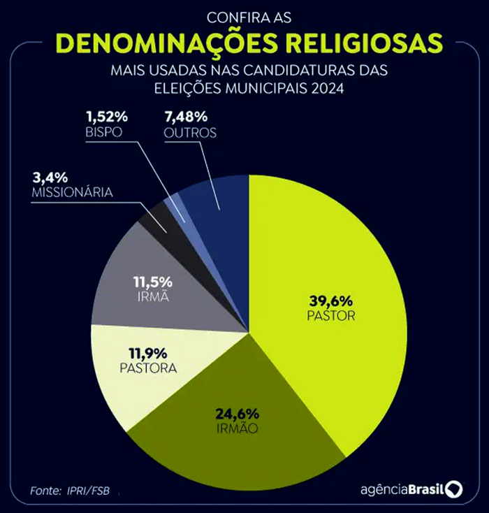 Essa representatividade é ainda maior considerando outros termos associados aos evangélicos que aparecem em nomes candidaturas nas urnas, como missionário (48), apóstolo (23) e ministro (três).