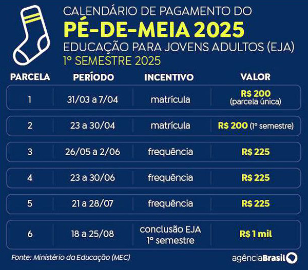 >> Confira os prazos do calendário do Pé-de-Meia 2025 para o EJA (segundo semestre):