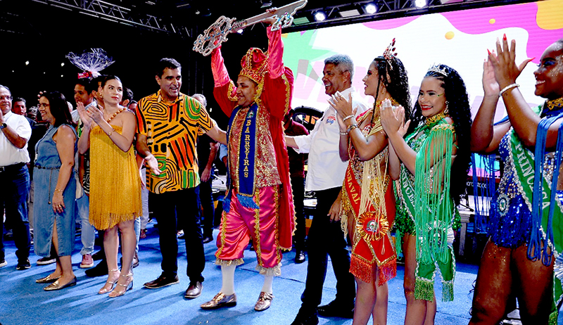 A cerimônia de abertura foi marcada pelo tradicional momento simbólico da entrega das chaves da cidade à Corte Momesca, que comandará a folia até terça-feira (4). O ato contou com a presença do prefeito Otoniel Teixeira acompanhado da primeira-dama, Chaliny Matutino, do vice-prefeito Túlio Viana, além do governador Jerônimo Rodrigues, que prestigiou as apresentações culturais ao lado de sua comitiva.