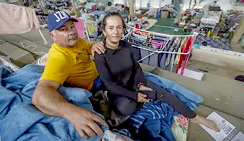 Luiz Antônio Ceccon e sua esposa abrigados no Ginásio Elyseu Quinhones, em Eldorado do Sul (RS) em junho de 2024 - Bruno Peres/Agência Brasil |