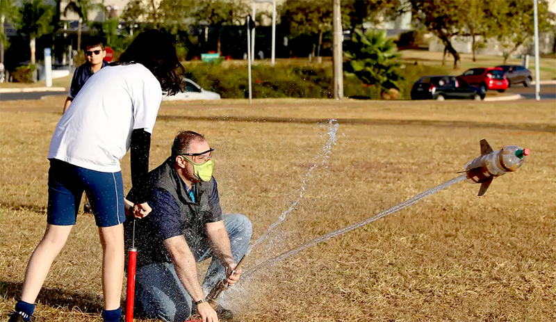 Já a Olimpíada Brasileira de Foguetes contempla estudantes do ensino fundamental e médio e também da educação superior. Os participantes devem construir e lançar foguetes com materiais como canudo, garrafa pet e tubo pvc, de acordo com cada nível. O alcance é medido pelos professores, que submetem os resultados na plataforma da olimpíada.