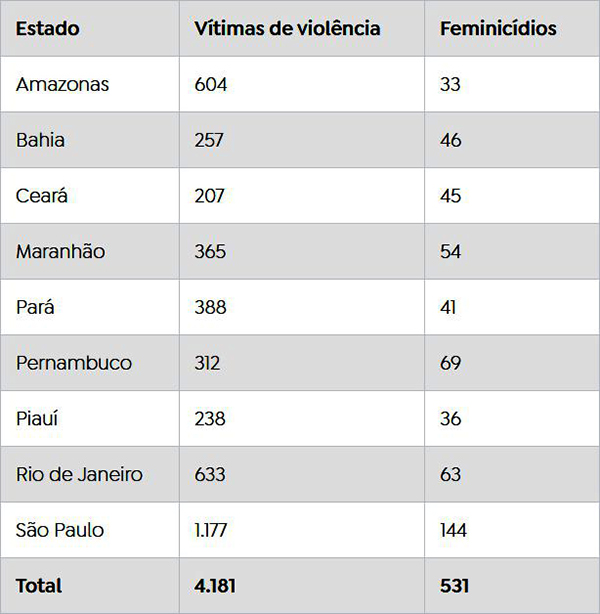 Veja a situação em cada estado monitorado, segundo o boletim Elas Vivem