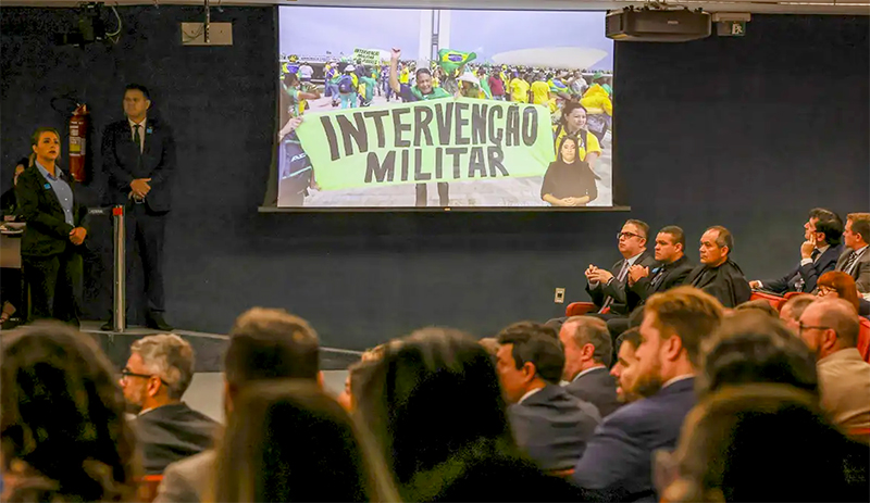 “Durante seu discurso, o juiz mostrou imagens dos eventos ocorridos em 8 de janeiro de 2023, quando uma horda de apoiadores do líder de extrema direita destruiu as três sedes dos Poderes”, disse a publicação mexicana.