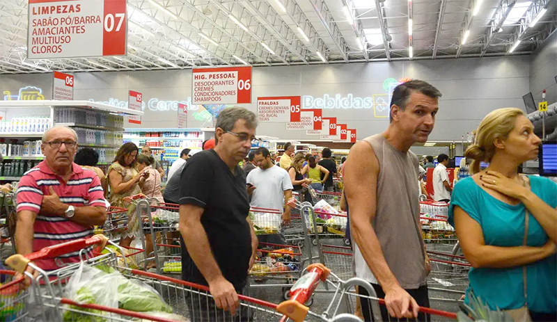 Supermercados lotados com filas nos caixas © Tânia Rêgo/Agência Brasil
