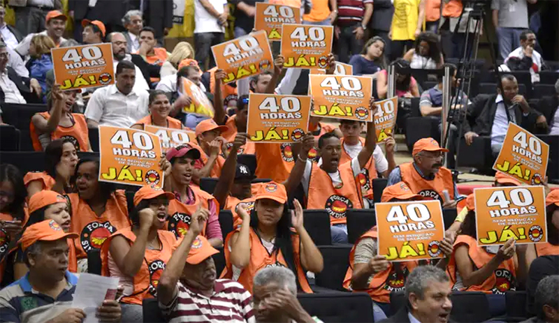 “Até porque na escala 5x2 [com dois dias de descanso semanal] há o risco de [os patrões] aumentarem o número de horas trabalhadas por dia, para ter, como resultado, o mesmo número de horas trabalhadas [na semana]”, complementou Laura Gontijo, ao defender que se estabeleçam limites semanal e, também, diário, visando uma escala de 36 horas semanais sem corte de salários.