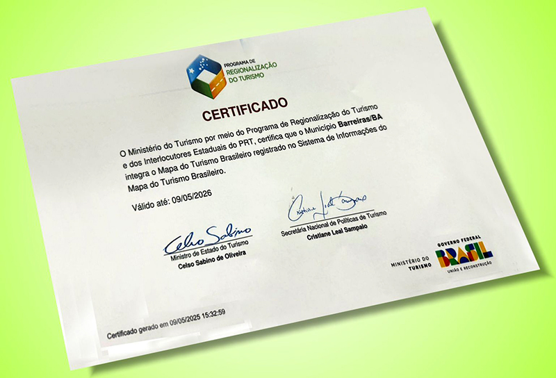 A certificação concedida pelo Ministério do Turismo é válida até maio de 2026 e representa uma conquista institucional que poderá refletir diretamente na economia criativa do município, consolidando Barreiras como um destino cada vez mais preparado para receber visitantes e investir em turismo como vetor de desenvolvimento.