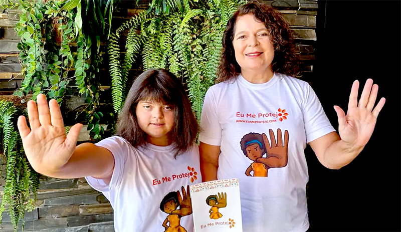 A jornalista Patrícia Almeida se viu diante dessa necessidade com o crescimento da filha Amanda, que tem síndrome de down. Ela cresceu enquanto a família vivia na Suiça, onde a educação inclusiva não é regra. Ao voltarem para o Brasil, Patrícia viu que a filha precisava de educação sexual para conviver de forma saudável na nova escola e então se tornou co-autora do projeto Eu me Protejo, que desde 2020 disponibiliza materiais educativos, com mensagens para as crianças, e também orientações mais detalhadas para familiares e profissionais de educação, saúde e outras instituições.