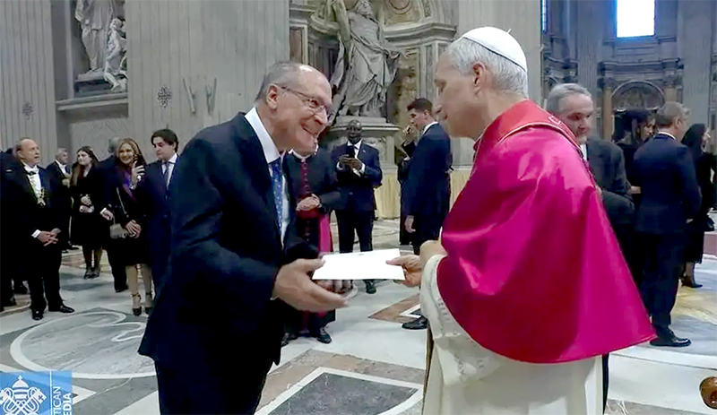 Vice-presidente Geraldo Alckmin entrega carta ao Papa Leão convidando-o