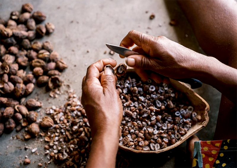 | O coquinho era apenas quebrado e vendido a atravessadores por um preço irrisório, mas passou a ter valor agregado e hoje é transformado em biscoitos, pães, bolos, sorvetes, amêndoas e óleo - ©Fred Rahal/COOPES |