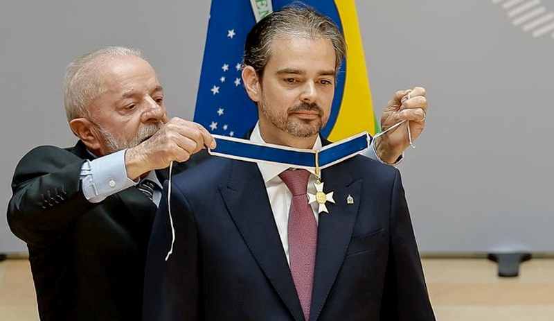 Presidente Lula condecora Valdecy Urquiza com a Ordem de Rio Branco no grau de Grande Oficial, durante cerimônia na sede da Interpol, em Lyon. Foto Ricardo Stuckert/PR |