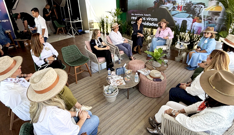 Rodas de conversa - Ao longo do dia, o estande recebeu ainda o lançamento do livro Mulheres de Fibra, além de rodas de conversa como Comunicação Expandida, Pioneiras do Oeste: Vozes que Constroem e Os Desafios das Vozes Femininas na Gestão Pública. Esses momentos reuniram mulheres que atuam em diversas frentes do agro e da gestão pública para debater caminhos de fortalecimento coletivo e ações concretas para ampliar a participação feminina em espaços de decisão.