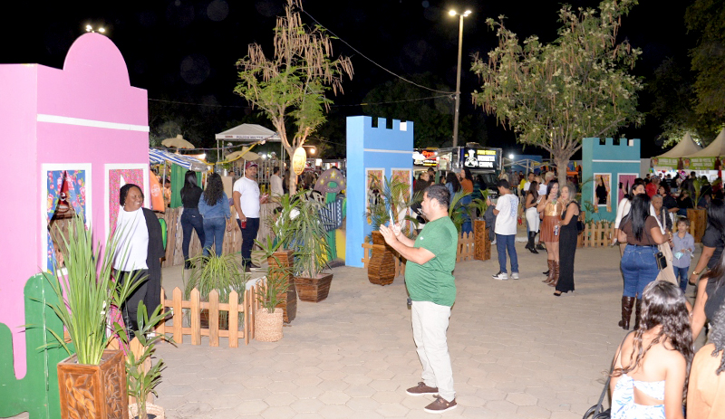 A programação começou com o grupo local Baião de Dois, que abriu a noite com muito arrasta-pé e xote, aquecendo o público para uma sequência de apresentações que mesclaram tradição e modernidade. No espaço da Vila de São João, visitantes circularam pelos cenários que reproduzem a vida no campo, com a Casa de Farinha, plantações do campo, casa de grãos e outros elementos que resgatam a essência da cultura rural.