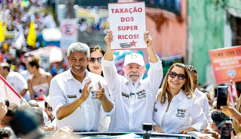 Durante a celebração do 2 de Julho na Bahia, o presidente Luiz Inácio Lula da Silva (PT) voltou a enfatizar o combate à desigualdade como eixo de sua gestão e, possivelmente, de sua futura campanha à reeleição. Em uma imagem publicada nas redes sociais, Lula aparece segurando um cartaz com os dizeres: “taxação dos super ricos!”. Na legenda da postagem, escreveu: “mais justiça tributária e menos desigualdade. É sobre isso”.