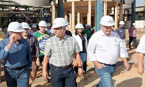 Antônio Galvan, de camisa branca, acompanha Braga Netto em visita a usina de etanol. (Divulgação/Inpasa) |