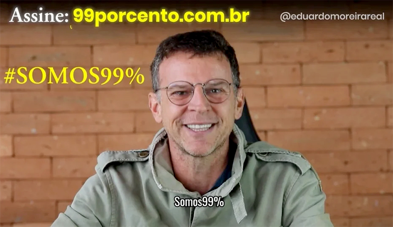 O fundador do Instituto Conhecimento Liberta (ICL), Eduardo Moreira, lançou, no ICL Notícias – 1ª edição desta segunda-feira (7), um manifesto contra privilégios de 1% da população que concentra 63% da riqueza do Brasil e de abusos de políticos fisiológicos servidores que recebem supersalários. O movimento foi intitulado de “Somos 99 por cento”, e quem quiser aderir ao abaixo-assinado deve acessar o site 99porcento.com.br.
