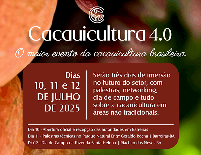 Para celebrar esse novo momento e aprofundar o debate técnico sobre o cultivo, a Aiba realiza, entre os dias 10 e 12 de julho, a quarta edição da Cacauicultura 4.0, considerado o maior evento do setor no Brasil.